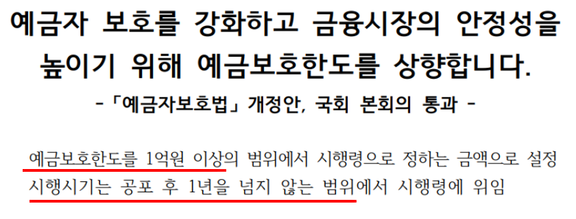 예금자보호법 개정 자체는 완료되었지만, 예금자보호 한도상향 1억원이 실제로 적용되는 시점은 아직 불확실합니다. 그 이유는 예금자보호법 개정안이 통과되었지만, 시행을 위한 세부적인 규정과 시행령 개정이 남아 있기 때문입니다.