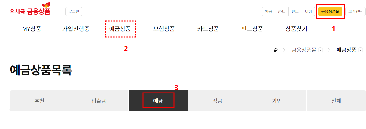 우체국 정기예금 금리비교의 첫 단계는 금리 조회입니다. 우체국 홈페이지에 접속하여 상단의 '금융상품몰' 메뉴를 선택하면 다양한 상품을 조회할 수 있습니다.
