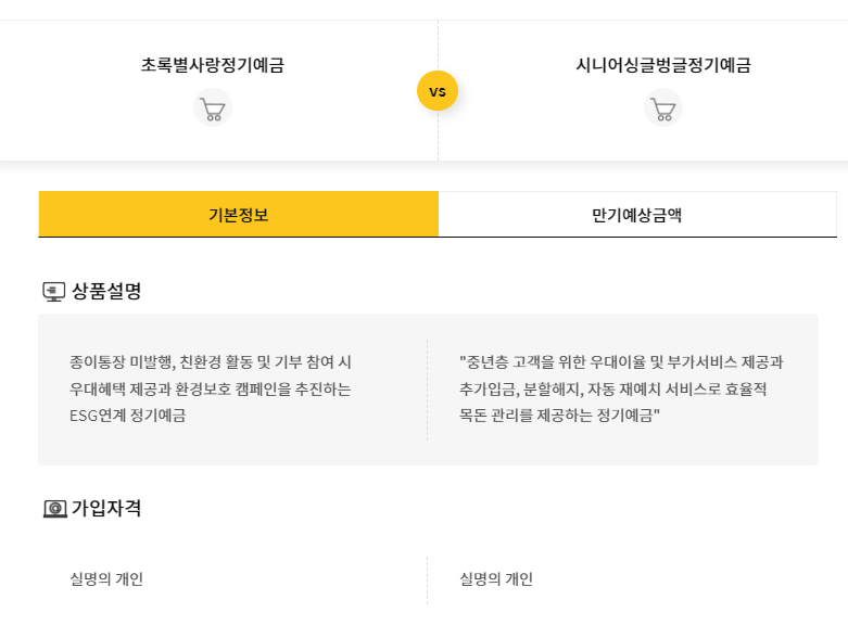 우체국 예금금리 비교서비스를 통해서 기본 금리와 우대 금리, 그리고 만기 예상 금액 등이 좌우로 나뉘어 항목별로 비교분석이 가능합니다.