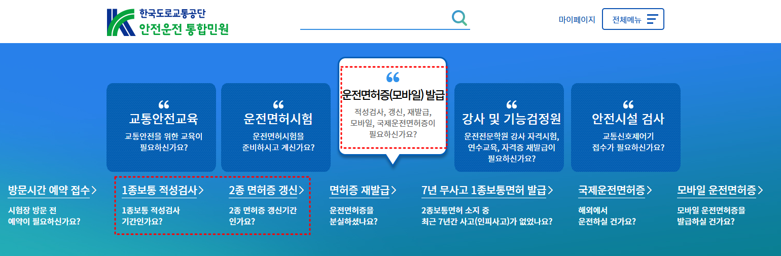 하나의 팁을 드리자면, 운전면허시험장을 이용하여 운전면허 적성검사 신청하는 경우 서류제출 및 신체검사가 완료되는 즉시 현장에서 면허증을 발급받을 수 있습니다.