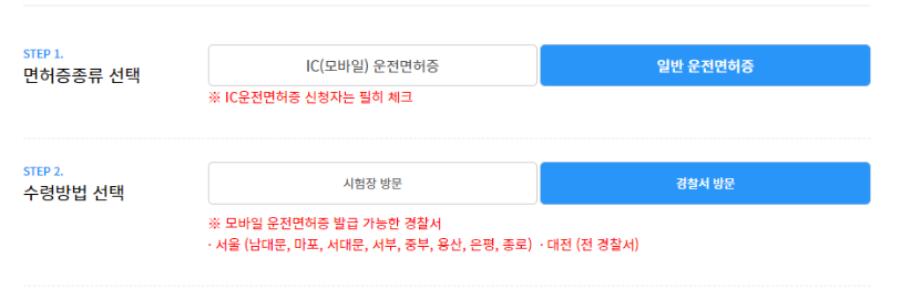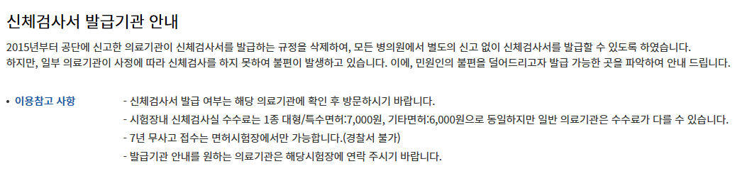 - 예약 날짜에 지정된 병원이나 면허시험장 방문