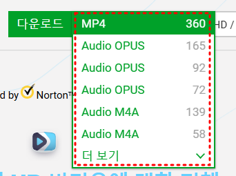 3. 원하는 파일 형식과 화질선택 후 다운로드
