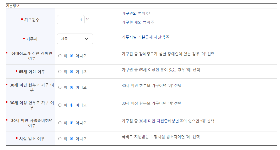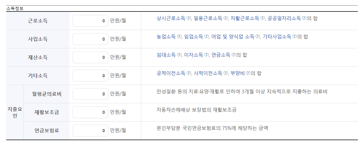 복지로 사이트 모의계산에 본인 가구원정보와 소득정보, 재산정보를 입력만으로 간편하게 자격조회가 가능합니다.