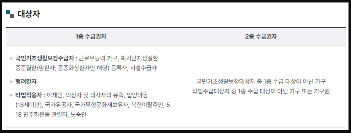 1종은 주로 근로무능력가구, 중증질환자, 희귀 질환자 등을 대상으로 하며, 2종은 1종에 해당하지 않는 저소득층 가구가 포함됩니다. 이와 같이 분류하는 이유는 수급자의 상황에 맞는 적절한 지원을 제공하기 위함입니다.