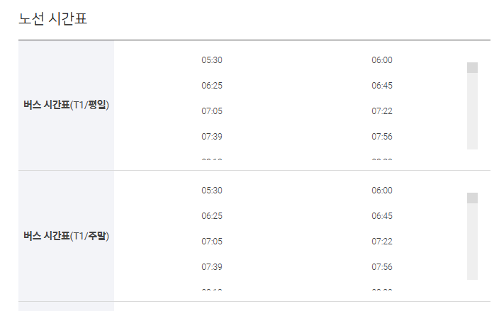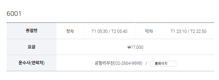 인천공항 리무진버스 시간표 확인시에는 터미널별로도 시간이 달라지게 되니 잘 확인해야합니다. 예를들어, 서울역으로 가는 6001번 리무진의 첫차는 새벽 4시 30분에 출발하며, 막차는 저녁 10시 40분에 출발합니다.