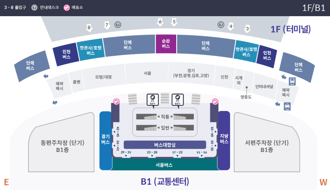 서울,경기,인천의 경우 인천공항 리무진버스 노선도는 번호로 표기되어있어, 어디서 출발하는지 한눈에 찾기 어려운데요, 이럴때에는 버스노선 검색 서비스를 이용하여, 출발지나 목적지를 입력하면 손쉽게 찾을 수 있습니다.