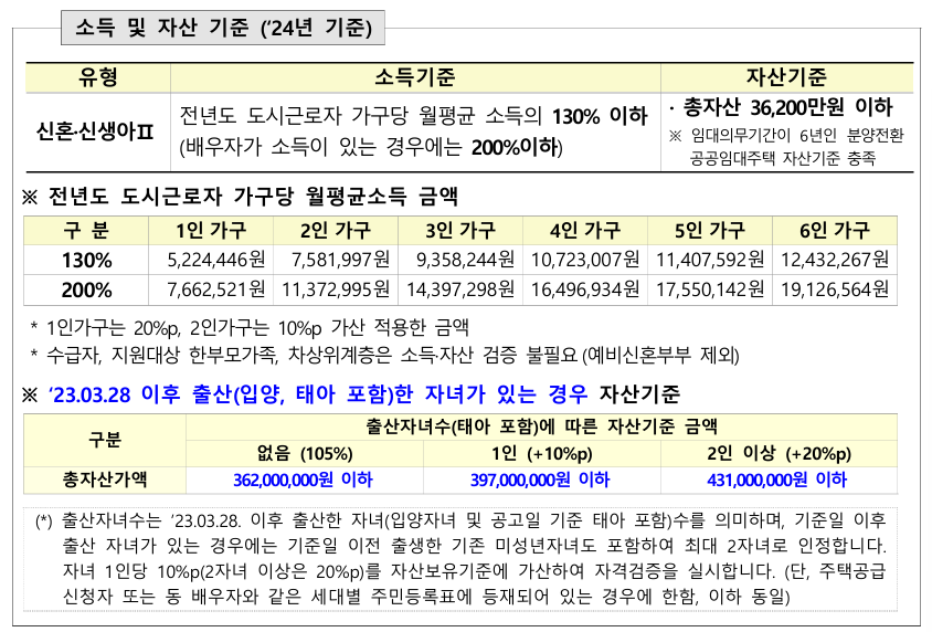 또한 예비신혼부부도 신청 가능하여, 결혼을 앞둔 커플들의 주거고민도 해결할 수 있습니다. 자산기준도 3억 6,200만원으로 설정되어 실질적인 주거약자들이 혜택을 받을 수 있도록 했습니다.
