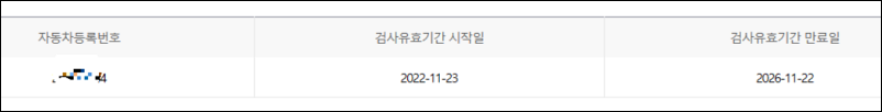 사이버검사소를 이용하여 자동차검사기간 조회 시에는 검사유효기간 시작일과 만료일이 표시됩니다.
