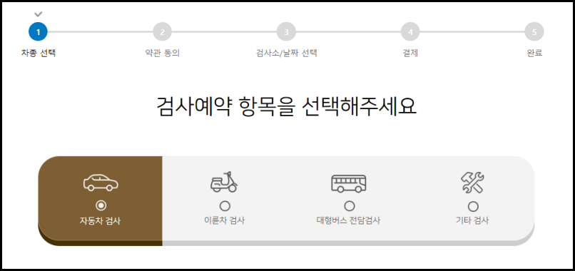 2. 검사예약을 받을 차종선택 및 차량검사항목 선택