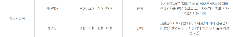 사업용 승용차는 신규등록 이후 차령이 2년 초과한 자동차는 1년에 한 번씩 진행해야 합니다.