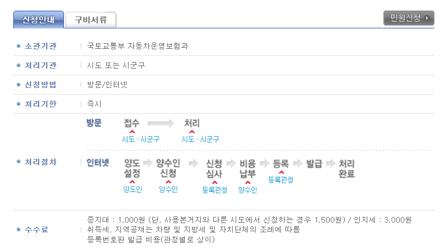 자동차 명의이전시 필요서류 인터넷 신청 가능