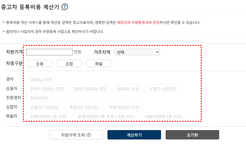 자동차 등록비용이 얼마나 나올지 알아보고 싶다면, 자동차 365 사이트를 통해서 계산해보세요. 거주지역과 차량가액, 차량정보를 입력하면 손쉽게 등록비용을 확인할 수 있습니다.