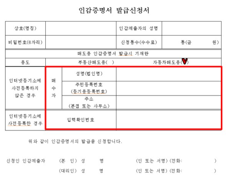 • 자동차 매도용 인감증명서