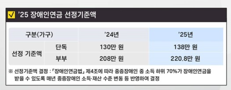 2025년부터 기초급여는 월 34만 2,510원으로 인상되었습니다. 장애인연금 인상은 전년도 대비 7,700원이 증가한 금액입니다.