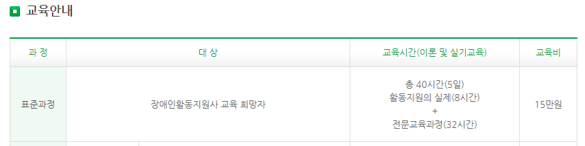 - 교육내용: 기본적인 장애 이해, 장애인 권리와 법률, 윤리교육, 기본 돌봄 기술 등을 포함
