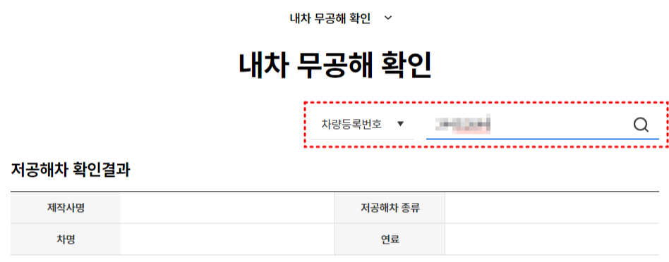 3. 차량등록번호 또는 차대번호 입력 후 조회