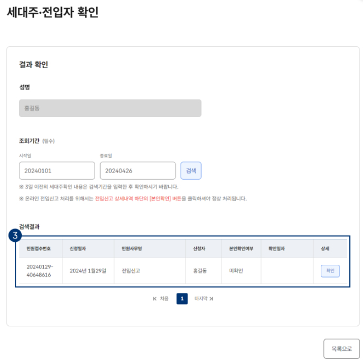 전입신고 인터넷 세대주 확인