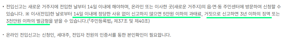 만일, 전입신고를 하지 않는 경우 주택이 양도되거나 경매에 올라가게 되는 경우 대항할 법적 근거가 없기때문에 손해를 볼 수 있으니 전입신고 인터넷 신고방법을 잘 확인해두시길 바랍니다.