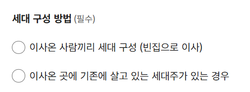 세대 구성 방법은 기존에 거주하고있는 사람들이 있는데로 이사를 간건지, 빈집으로 이사를 했는지 여부에 따라서 선택사항이 달라집니다.