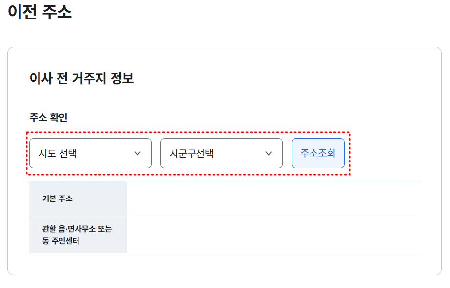 3단계는 이전주소를 입력하는 창입니다. 주소 조회를 하면 본인인증절차를 거쳐야합니다.