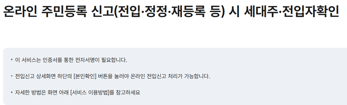전입신고 인터넷 필요서류 세대주확인 방법 안내