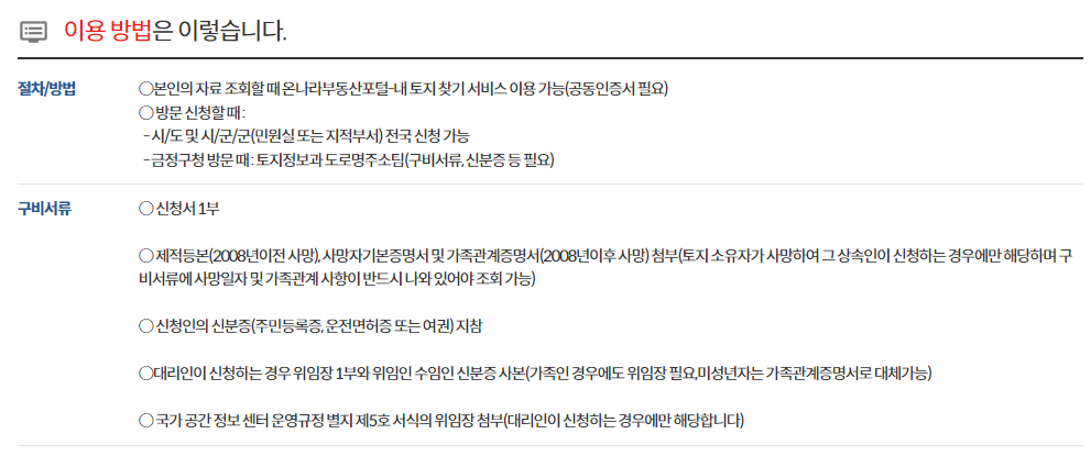 조상땅찾기 조회 오프라인 신청 방법
