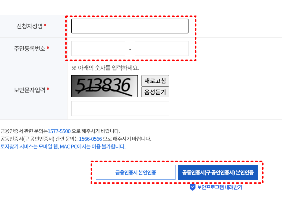 또한, 조회 대상자의 주민등록번호가 있어야 전국의 토지를 조회할 수 있으며, 만약 주민등록번호가 없는 경우 특정 지역 5곳을 지정하여 조회할 수 있습니다.