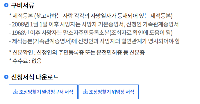 조상땅찾기 조회 신청 시 준비물