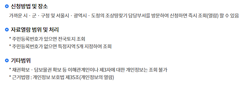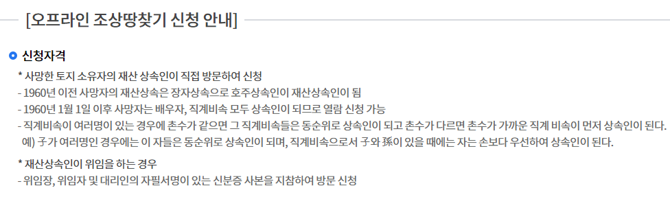 조상땅찾기 조회 신청 자격