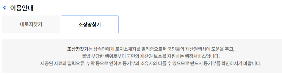 조상땅찾기 조회 서비스