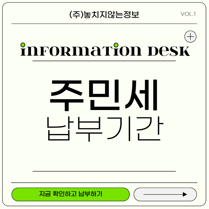 주민세 납부기간을 놓치지 마시고, 편리한 온라인 납부 방법을 이용하여 기한 내 납부하시기 바랍니다!
