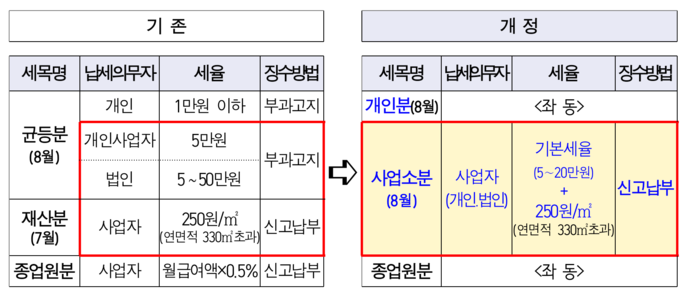 사업소분 8월 1일~31일 관할 구청 신고 후 납부 330㎡ 초과 사업장