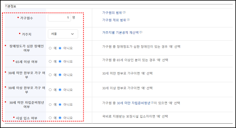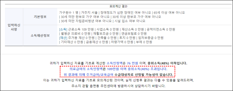 해당 서비스는 본인이 입력하는 정보를 기준으로 모의계산하는 것으로 실제 신청시에 결과값과는 다를 수 있으니 유의하시길 바랍니다.