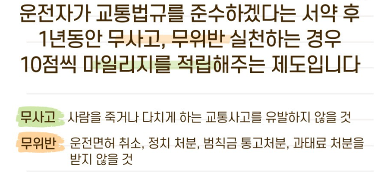 1년 동안 무사고·무위반을 지키지 못할 경우, 마일리지 적립이 취소됩니다. 하지만 다시 신청할 수 있으니 너무 걱정하지 않으셔도 됩니다.