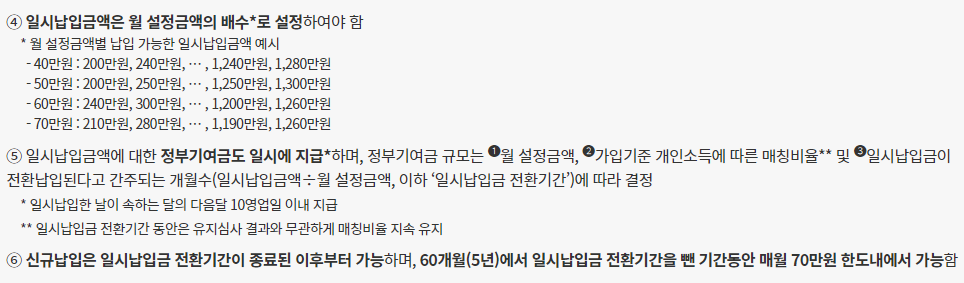 • 청년도약계좌 납입한도 : 매월 최대 70만원 까지 자유롭게 납입