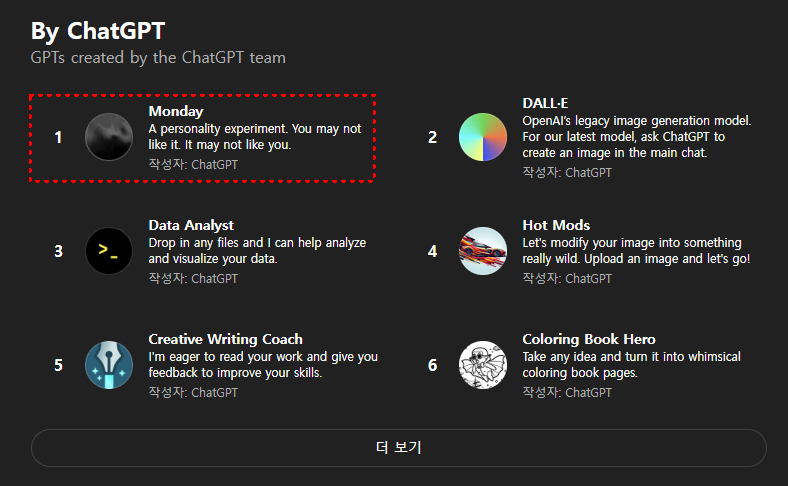- 'By ChatGPT' 항목 선택 후 Monday GPT 찾기