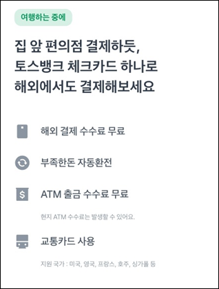 토스뱅크 외화통장 혜택 2. 해외 결제 수수료 무료