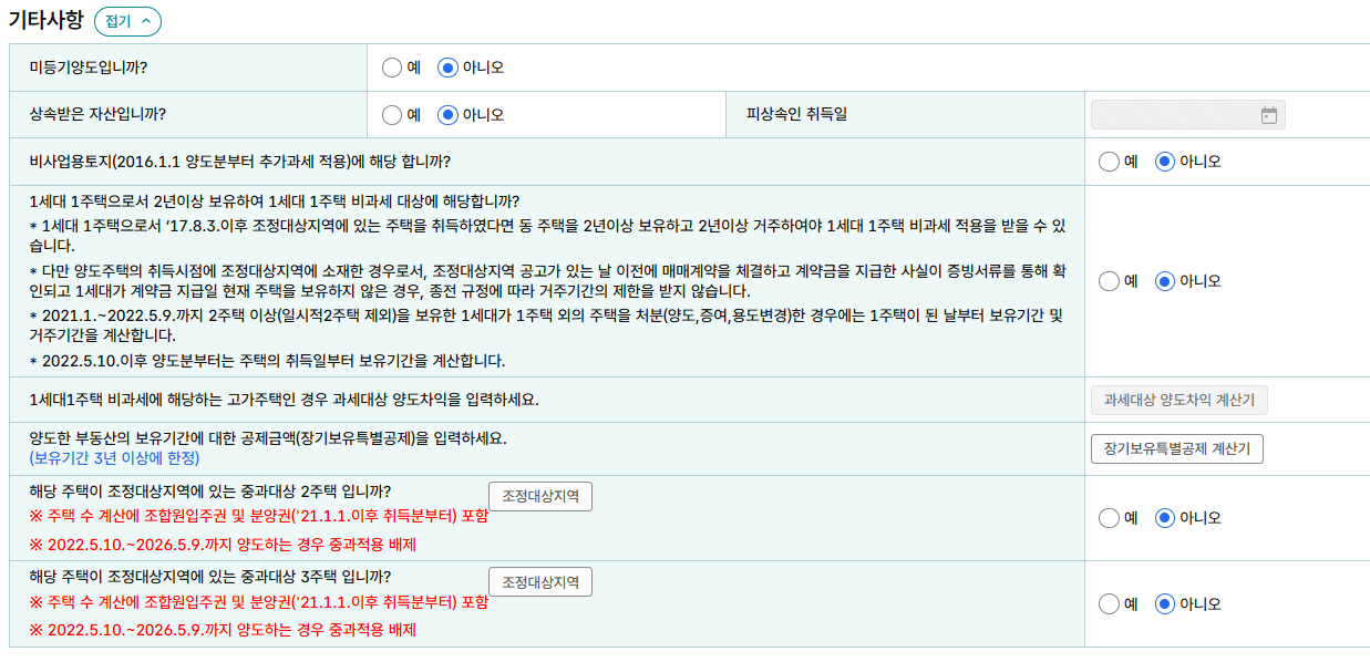 • 양도일: 토지 매각계약서상 잔금 수령일 또는 등기 접수일 중 빠른 날