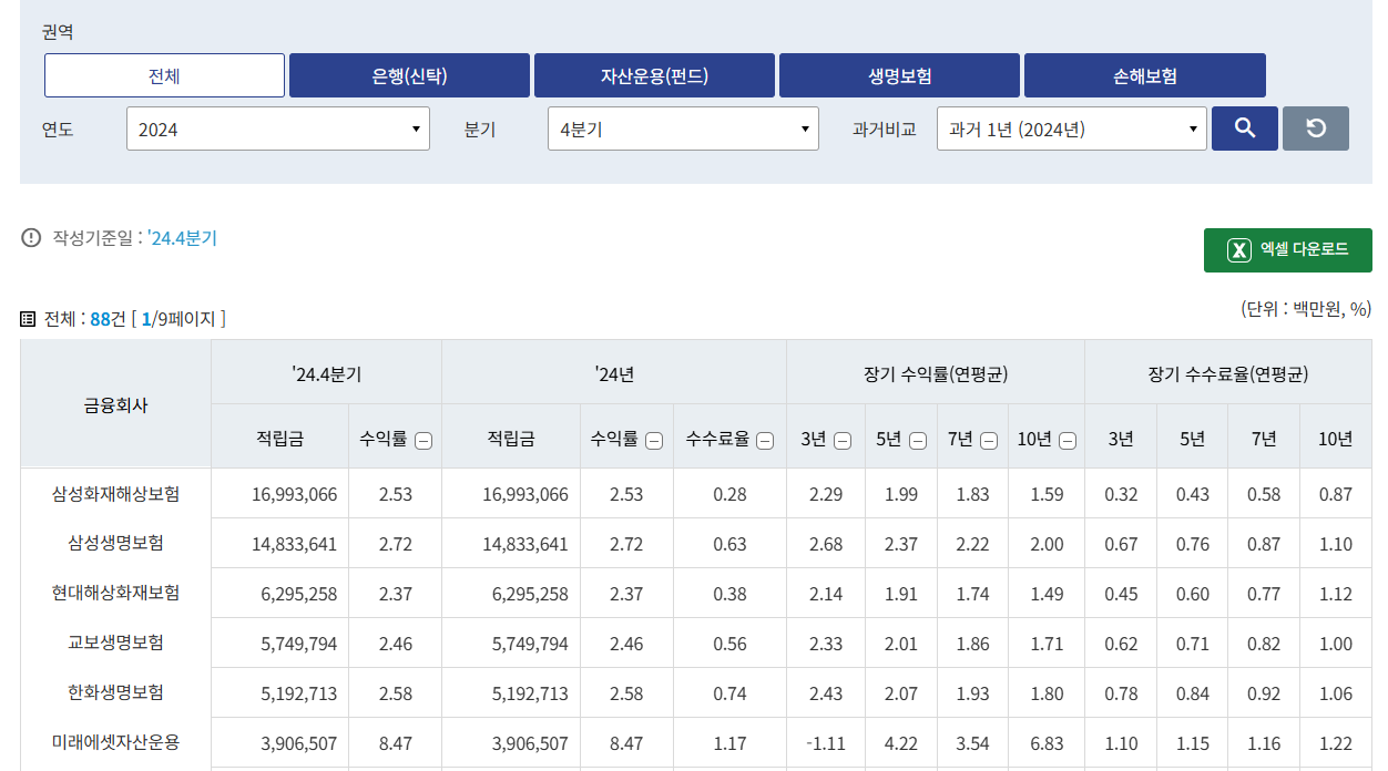 - 연금저축, 연금보엄 등 개인연금 상품별 현황