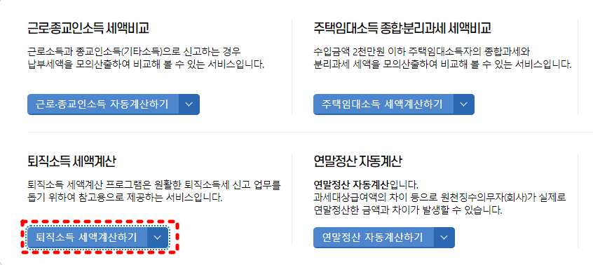 퇴직금 세금은 여러 단계를 거쳐 계산되며, 수작업으로 계산할 경우 실수가 발생할 수 있습니다. 이를 방지하기 위해 홈택스에서 제공하는 퇴직금 세금 자동계산기를 사용하는 것이 좋습니다.