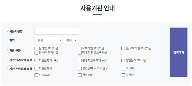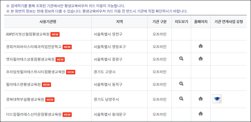평생교육 바우처 사용기관은 매년 달라질 수 있으므로, 항상 최신 정보를 확인하는 것이 중요합니다.