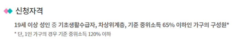 ✅ 소득 : 중위소득 65% 이하 가구의 구성원