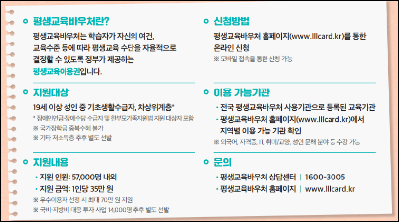 자세한 평생교육 바우처 지원내용은 다음과 같습니다.