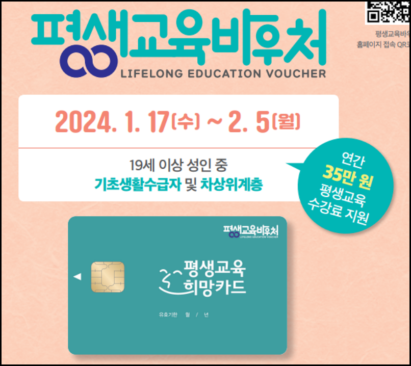 평생교육 바우처 신청기간 : 평생교육바우처 홈페이지를 통해서 별도 공지