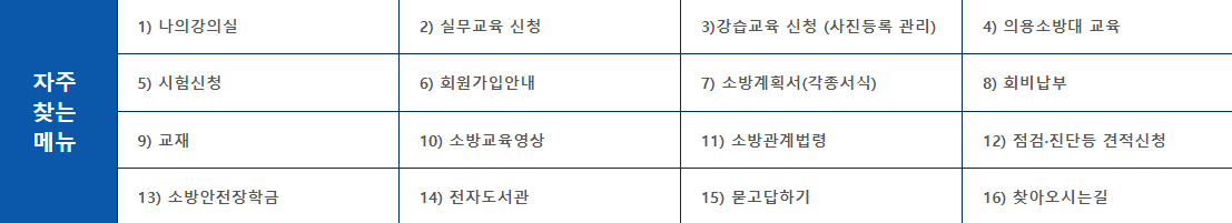 한국소방안전원 홈페이지는 회원가입만으로도 다양한 서비스를 이용할 수 있으며, 각종 교육 신청도 간편하게 처리할 수 있어 사용자가 이용하기가 쉬운 홈페이지입니다.