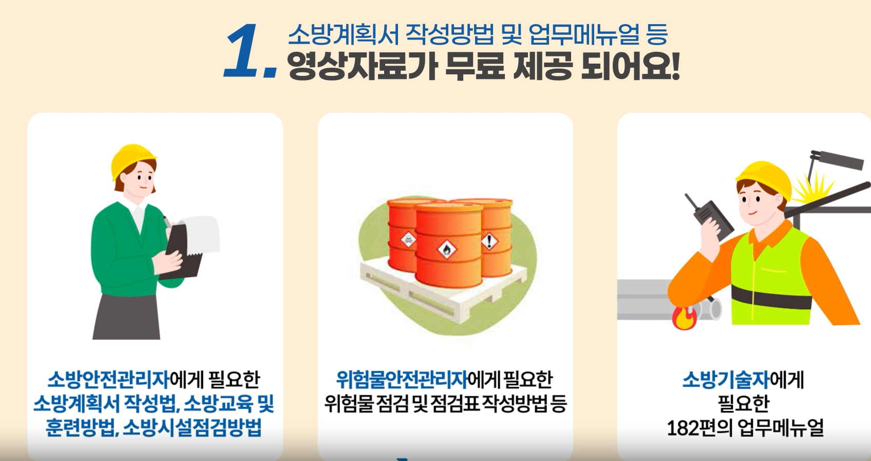 인터넷을 통한 각종 정보 제공, 전자도서관 및 자료실 이용을 통해 소방안전 관련 자료를 자유롭게 열람할 수 있으며, 필요한 서식도 무료로 다운로드할 수 있습니다.