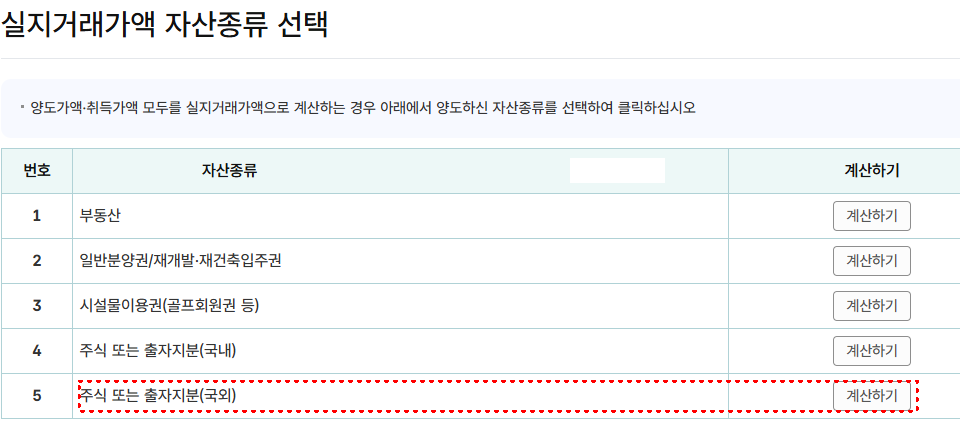 - '신고서 작성하기' → '해외주식 등 기타자산 양도' 선택