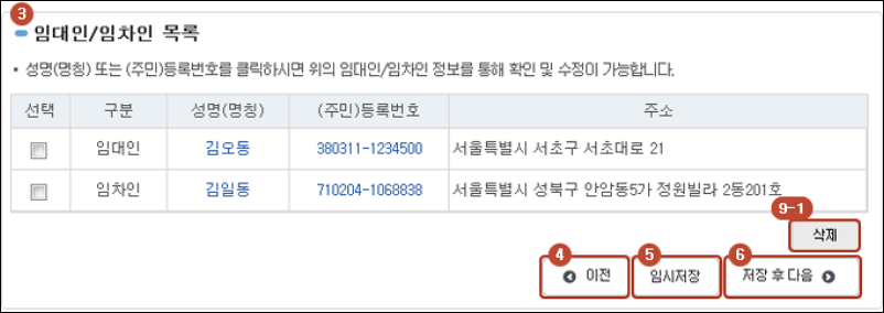 5. 임대인 및 임차인 정보입력