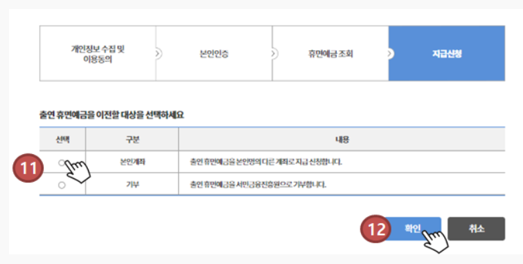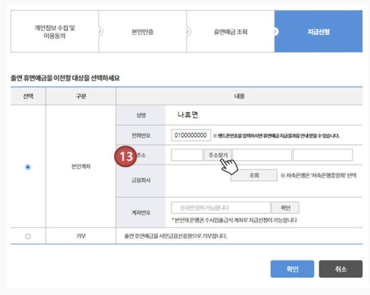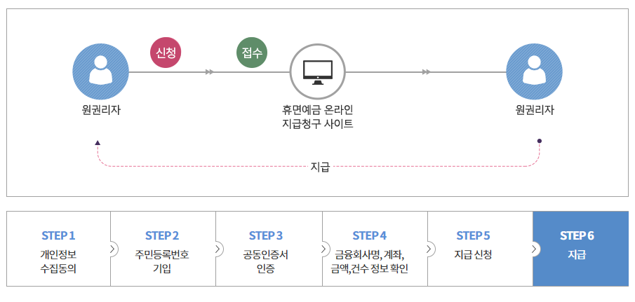 - 지급 신청: 확인된 휴면예금을 지급 신청