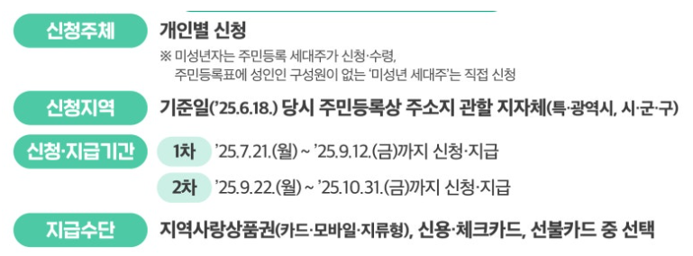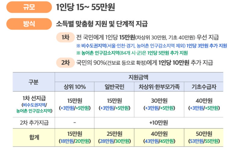 - 일반 국민: 총 25만원 (1차 15만원 + 2차 10만원)
